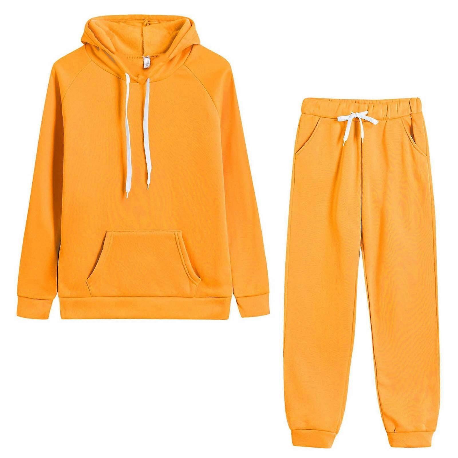 Ediodpoh Womens Solid Color Long Sleeve Hooded Sweatsuit Casual Loose Two Piece Set Sets for Women 2 Pieces Yellow XXL