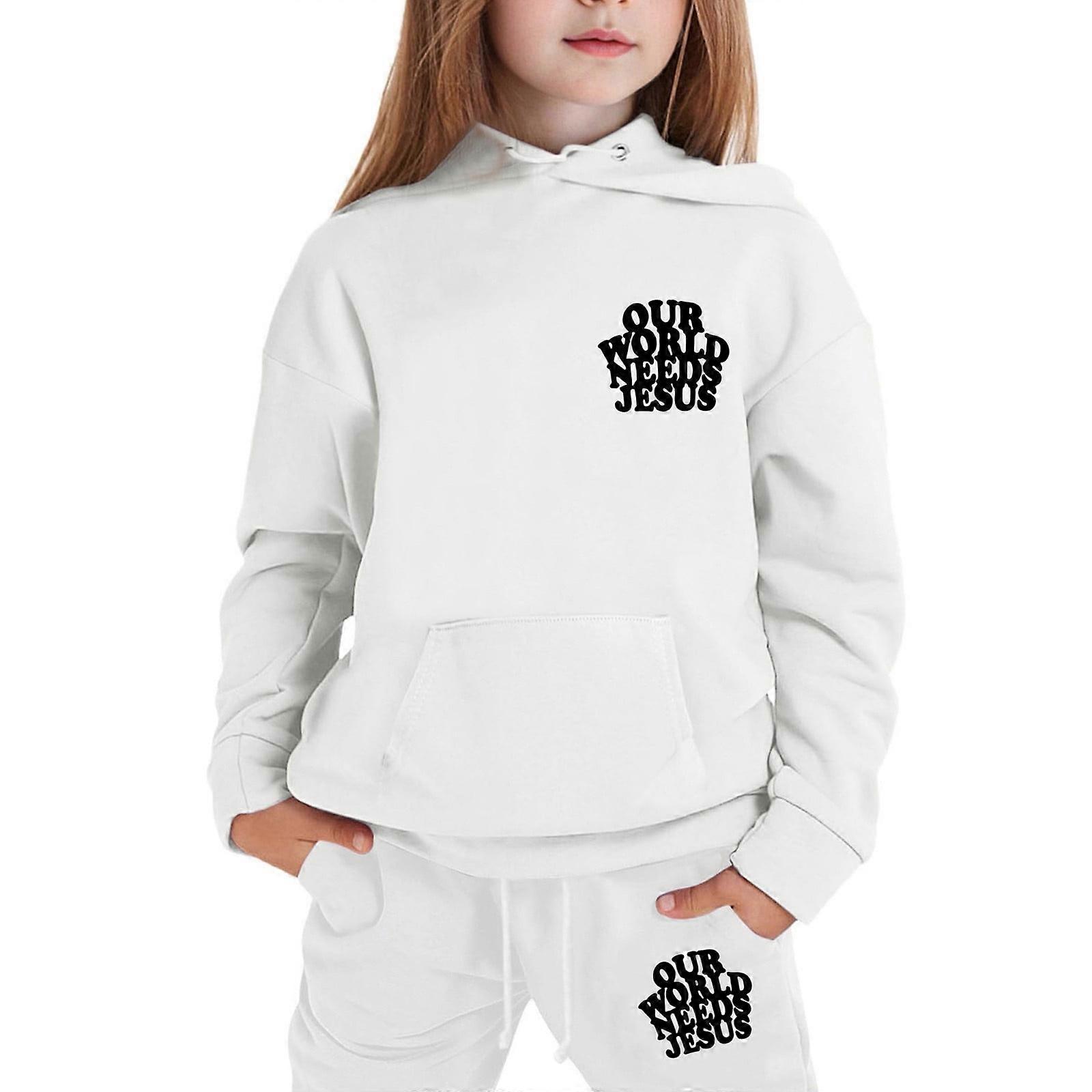 Ediodpoh Kids Hoodie & Pants Set, Long Sleeve Solid Warm Sweat Suit for Boys & Girls, White, Size 7-8, Compatible with Kids’ Casual Wear