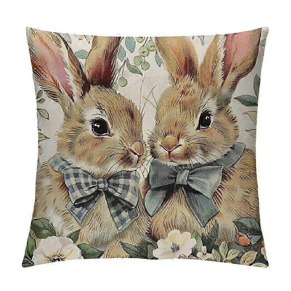 Easter Pillow Covers Floral, Bunny & Buffalo Plaid Bowknot Decorative Throw Pillows for Spring Farmhouse Home Decor