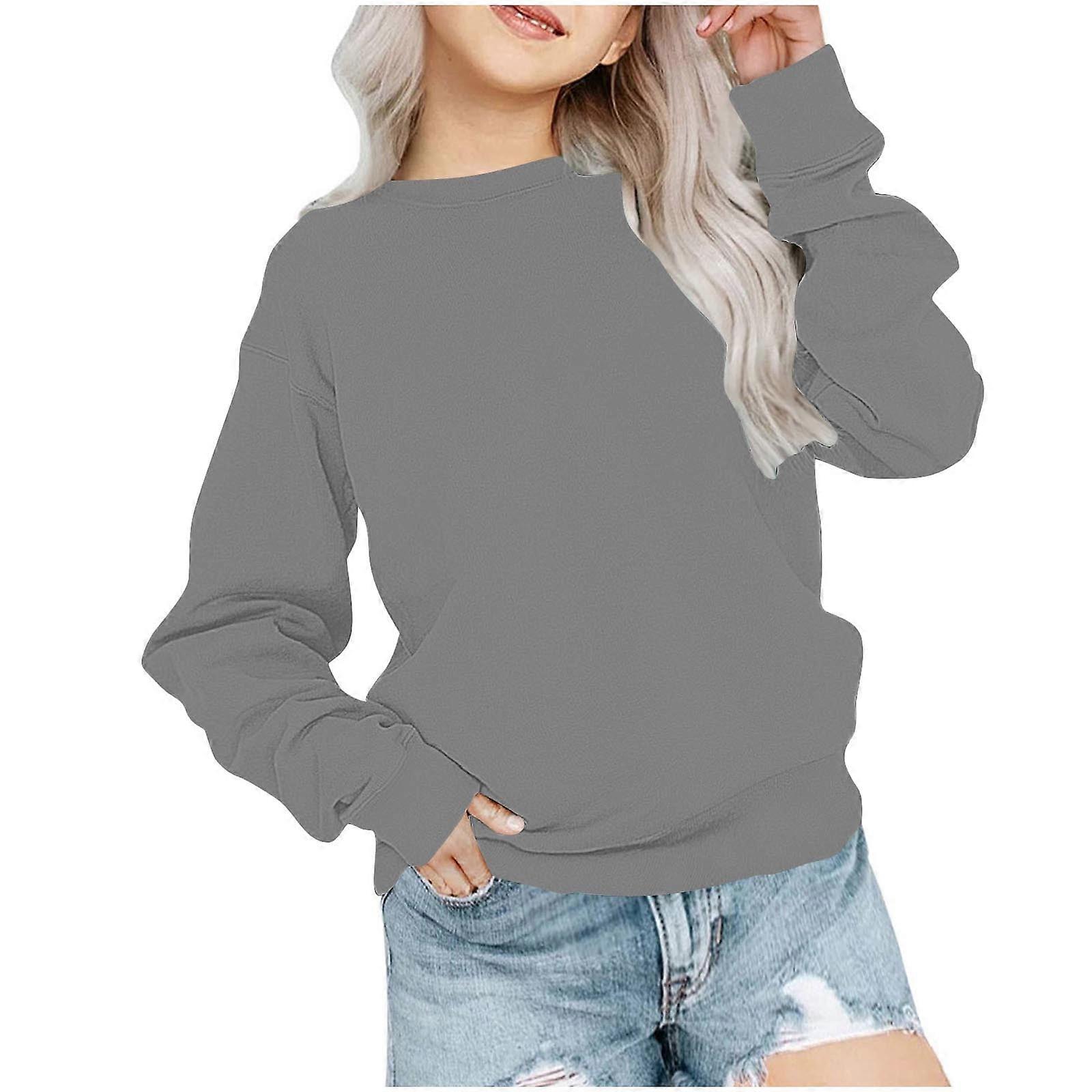 Kids Boys Girls Sweatshirt Solid Color Crewneck Sweatshirts Kids Fashion Spring Fall Cute Long Sleeve Pullover Sweatshirt Top Gray