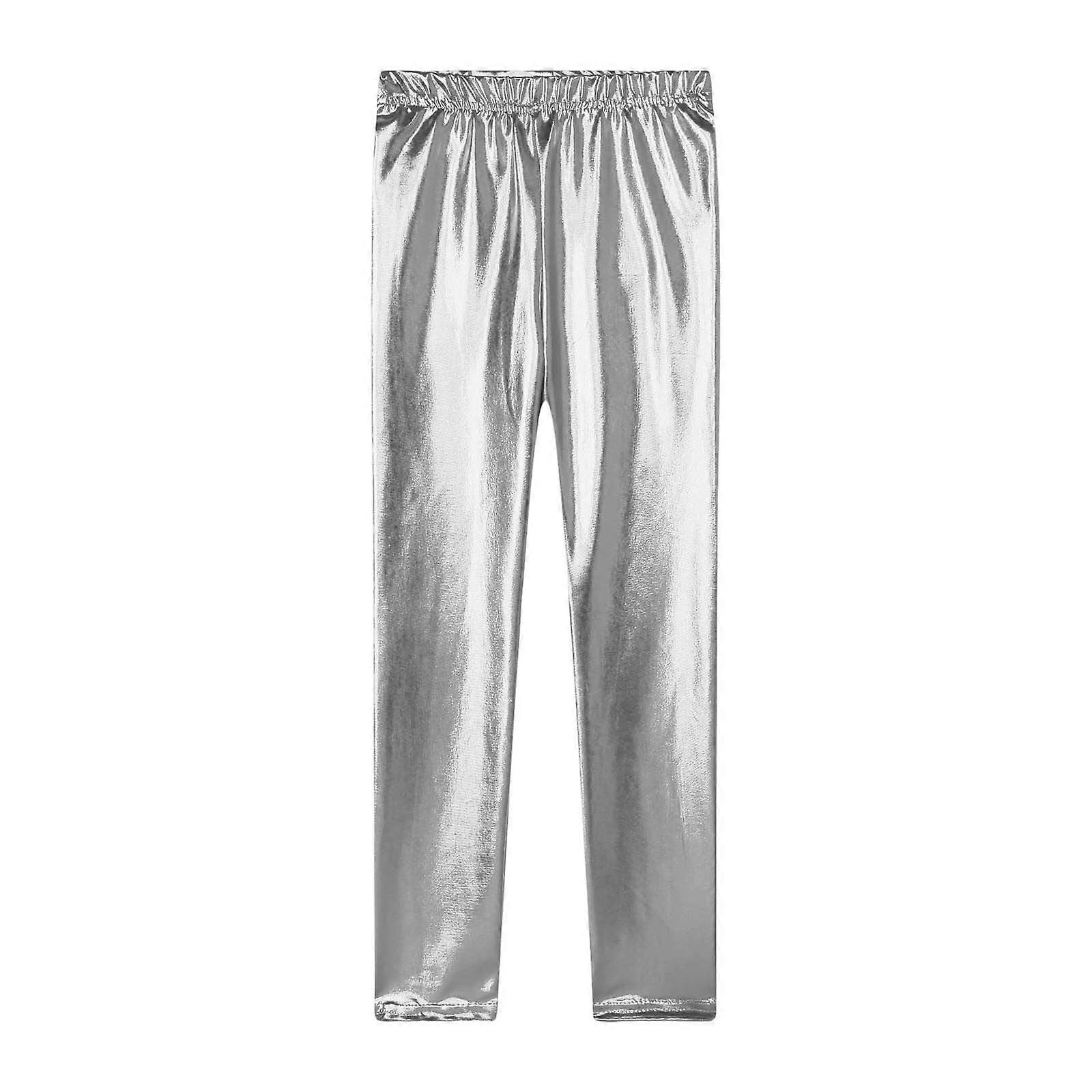 Ediodpoh Girls' Metallic Leggings for Toddlers & Kids – Stretchy, Comfortable Casual Pants for Spring/Summer, Silver, Size 8-9 Years