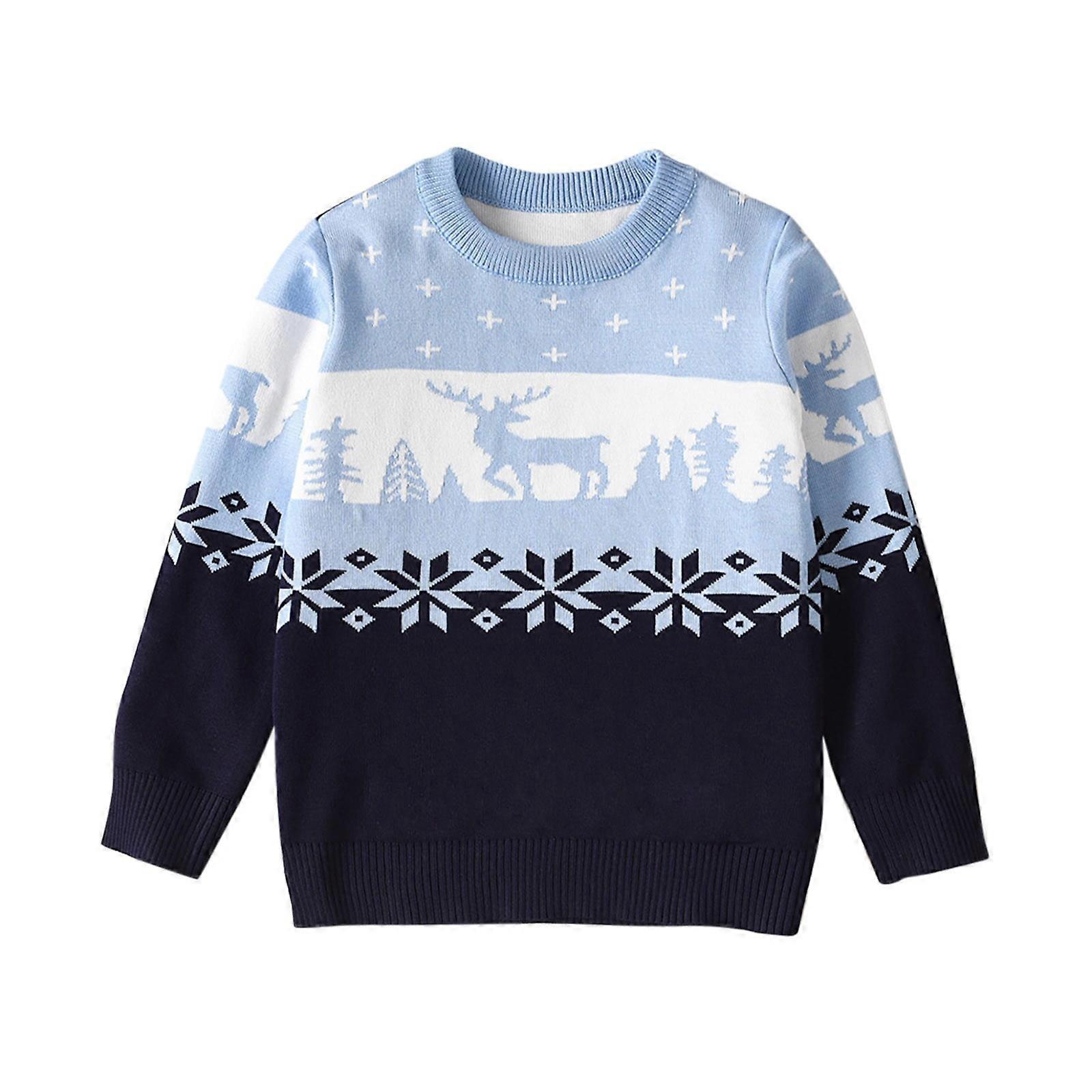 Kids Boys Christmas Sweater Cute Winter Thermal Knit Crewneck Sweater Christmas Print Fashion Casual Warm Pullover Knit Sweater Kids Clothes Sky Blue