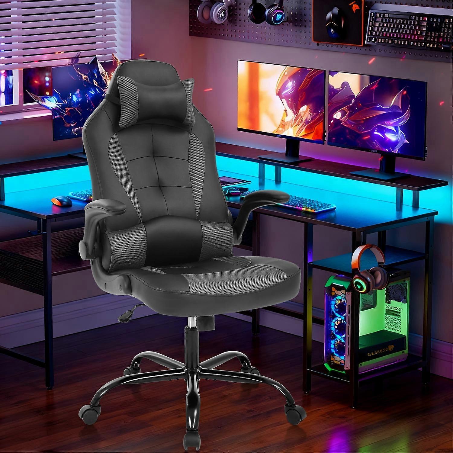 PC Gaming Chair Ergonomic & Adjustable Office Desk Chair Leather Reclining Computer Chair with Flip Up Arms Headrest for Adult Teen, Grey