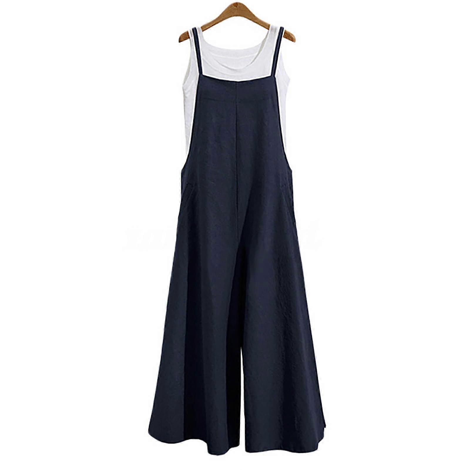 Capri Pants For Women Women'S Oversize Bib Trousers Overalls Jumpsuit Romper Summer With Straps Blue Xxl