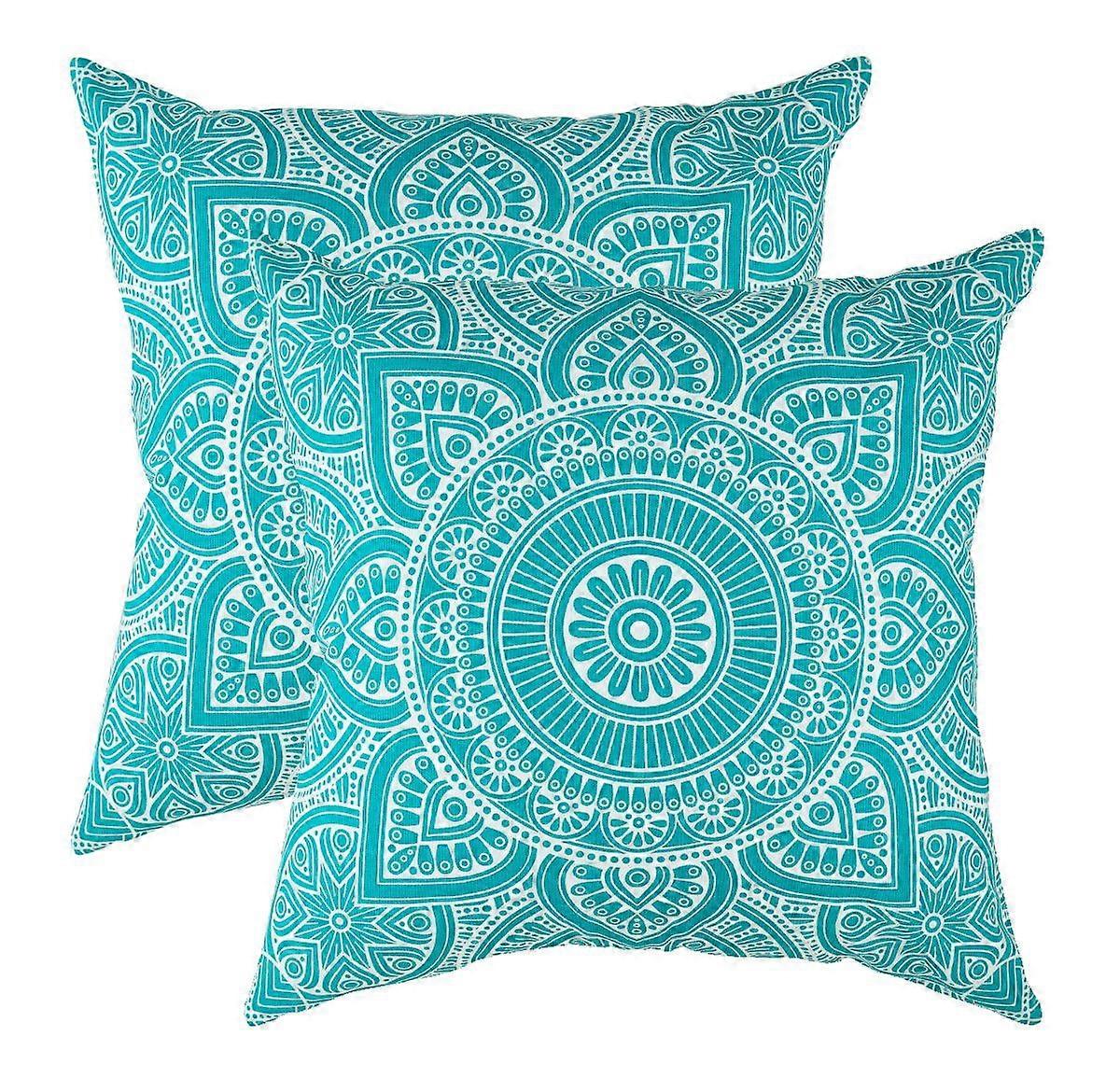(Pack of 2) Mandala Accent Cotton Decorative Square Throw Pillow Covers (20" x 20", Turquoise)