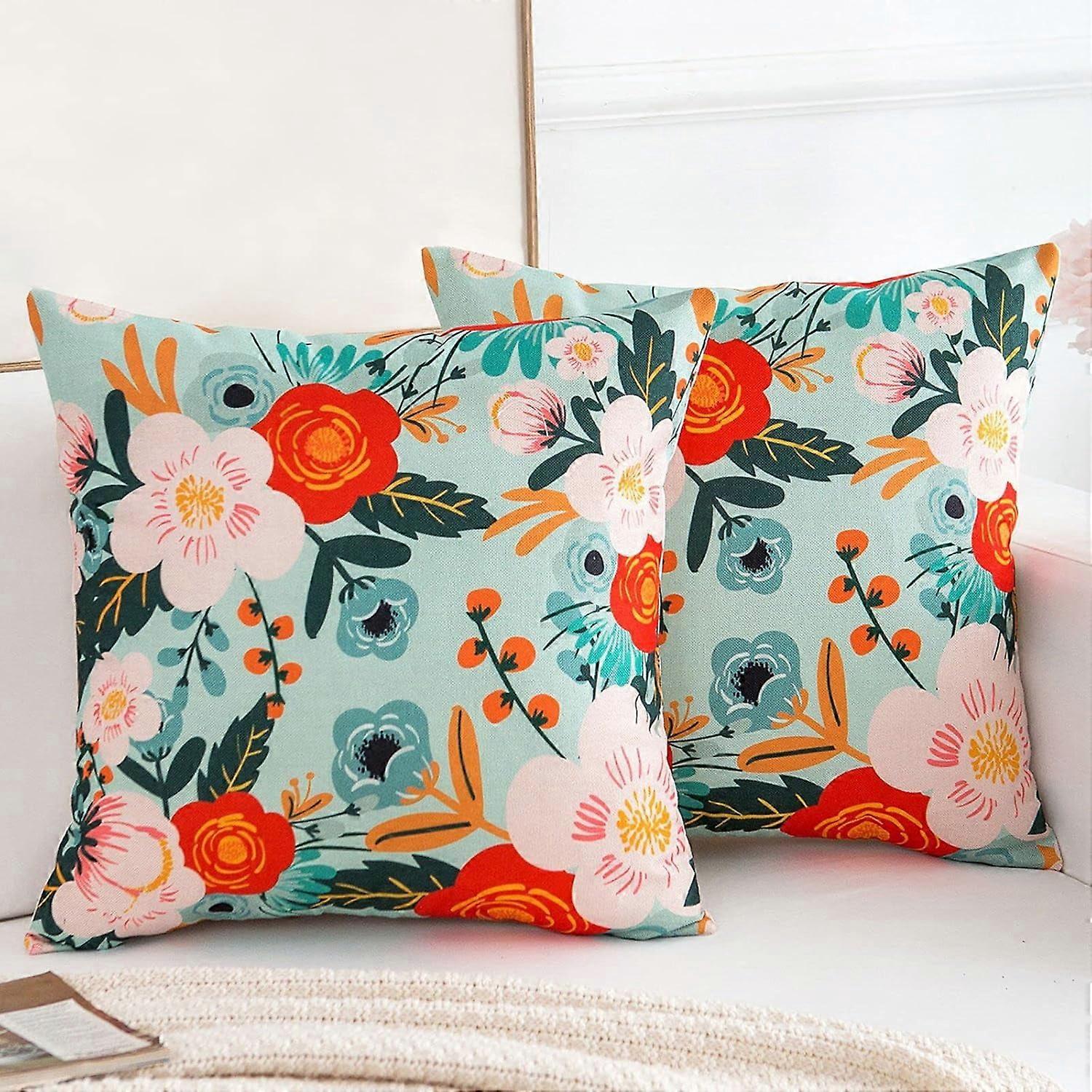 18x18 Pillow Covers Set of 2, Spring/Summer Floral Boho Linen Covers Compatible with 18x18 Inserts, Farmhouse & Outdoor Decor