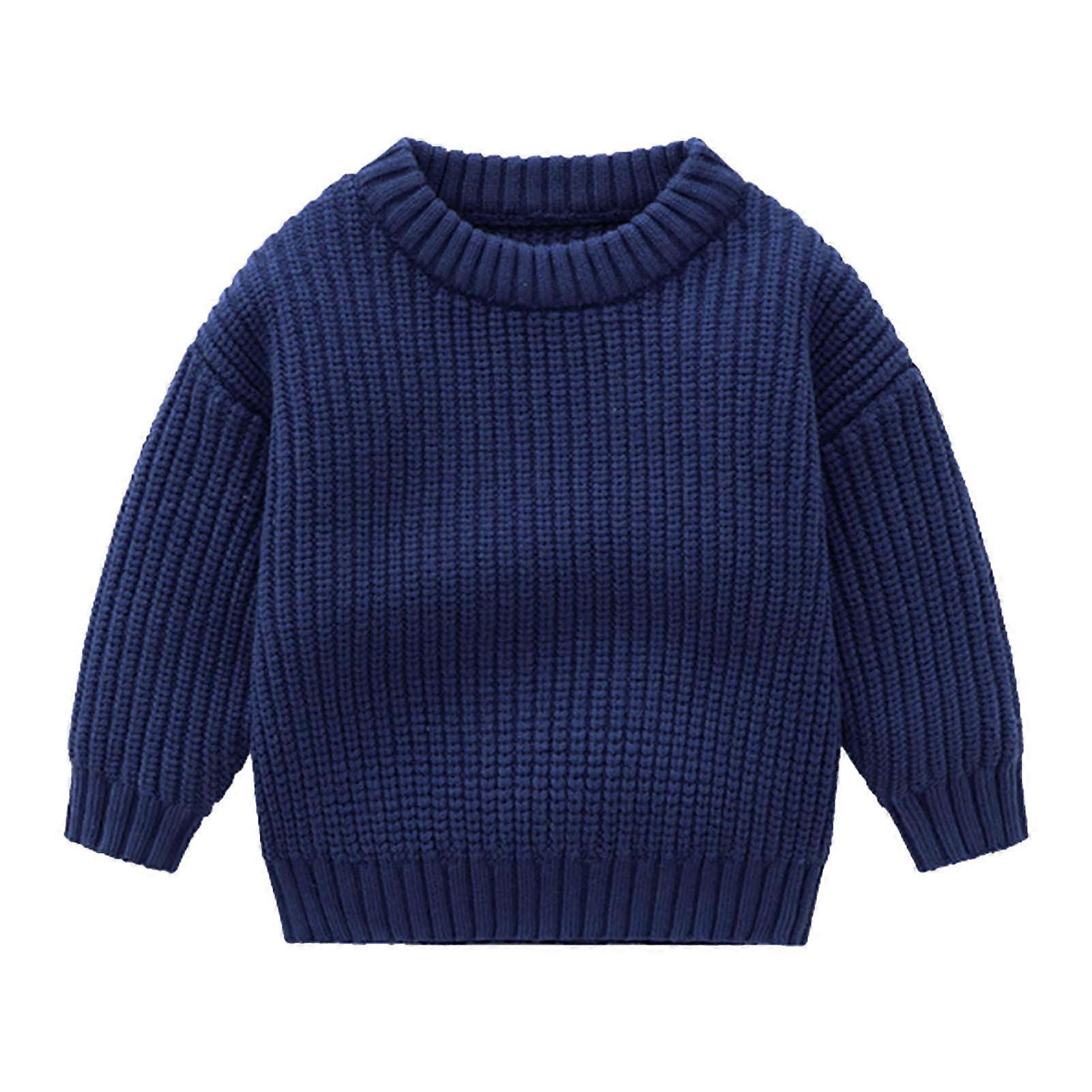 Kids Toddler Baby Boys Girls Cotton Sweaters Winter Loose Solid Color Pullover Sweater Cute 2025 Casual Thick Keep Warm Sweater Dark Blue