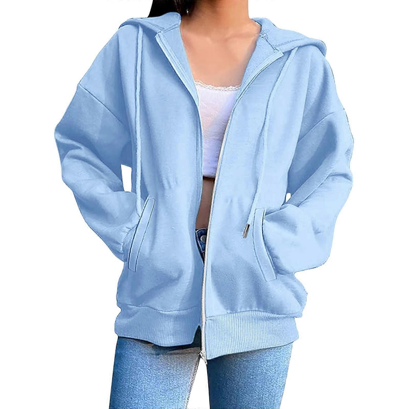 Lightweight Full Zip Hooded Jacket Women Athletic Track Top With Kangaroo Pocket For Running And Gym Workout Essentials Sky Blue XL