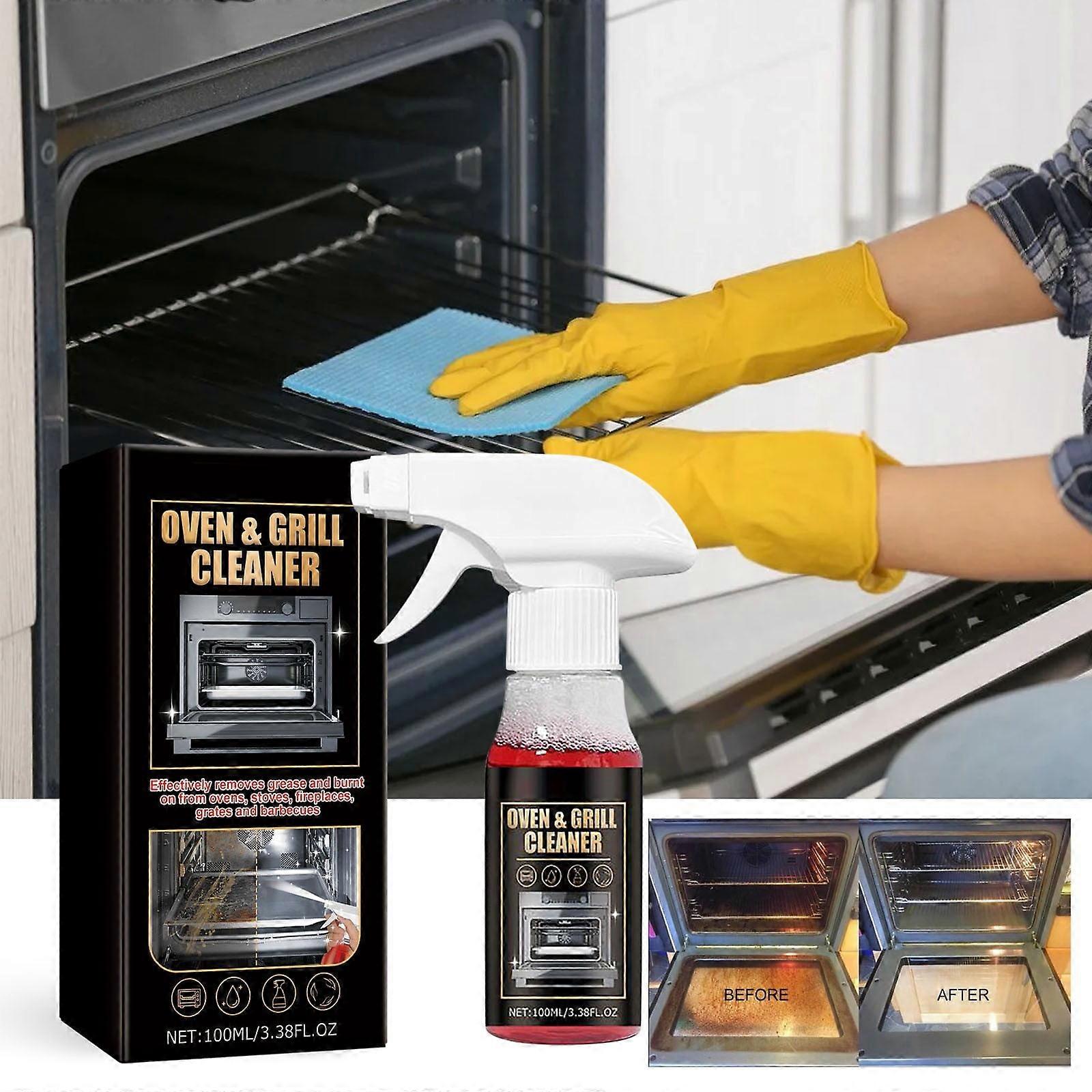 Oven Grill Cleaner | Powerful Degreaser | Vegan Microplastic-Free Formula | Active Foam Removes Grease & Burnt Residue | Safe for Ovens, Stoves, Fireplaces, Grates, BBQs | 100ml Recycled Bottle Features: Vegan, from microplastic, 100% Bottle made from 100% recycled plastic Effectively removes grease and burnt from ovens, stoves, fireplaces, grates and barbecues Effectively removes burnt residues No aggressive fumes Active foam also adheres to vertical surfaces Use gloves for thorough cleaning Do not use sensitive surfaces such as kitchen worktops or cupboards Product Description: 1X oven and rack cleaner 100ml Eco-Friendly Design: Made from recycled plastic and vegan, free from microplastics. Powerful Cleaning Performance: Effectively removes grease, burnt residues, and stains from ovens, stoves, fireplaces, grates, and barbecues. Safe and Fume-Free: Contains no aggressive fumes, ensuring a safer cleaning experience. Active Foam Adhesion: Uses active foam that sticks to vertical surfaces for thorough cleaning. Usage Precautions: Wear gloves during cleaning and avoid using on sensitive surfaces like countertops and cabinets.