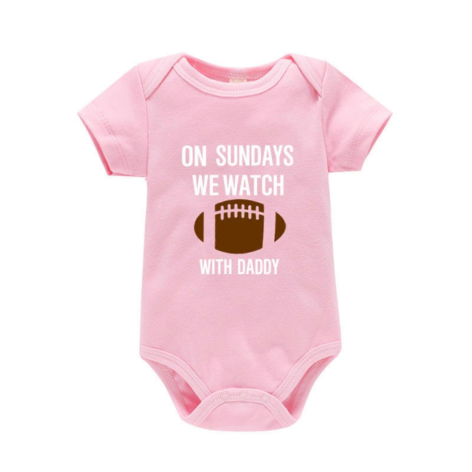 Clearance Onesies 0-3M Unisex Short Sleeve Letter Rugby Romper Bodysuit for Newborns (Pink, 9M) – Compatible with Baby Essentials