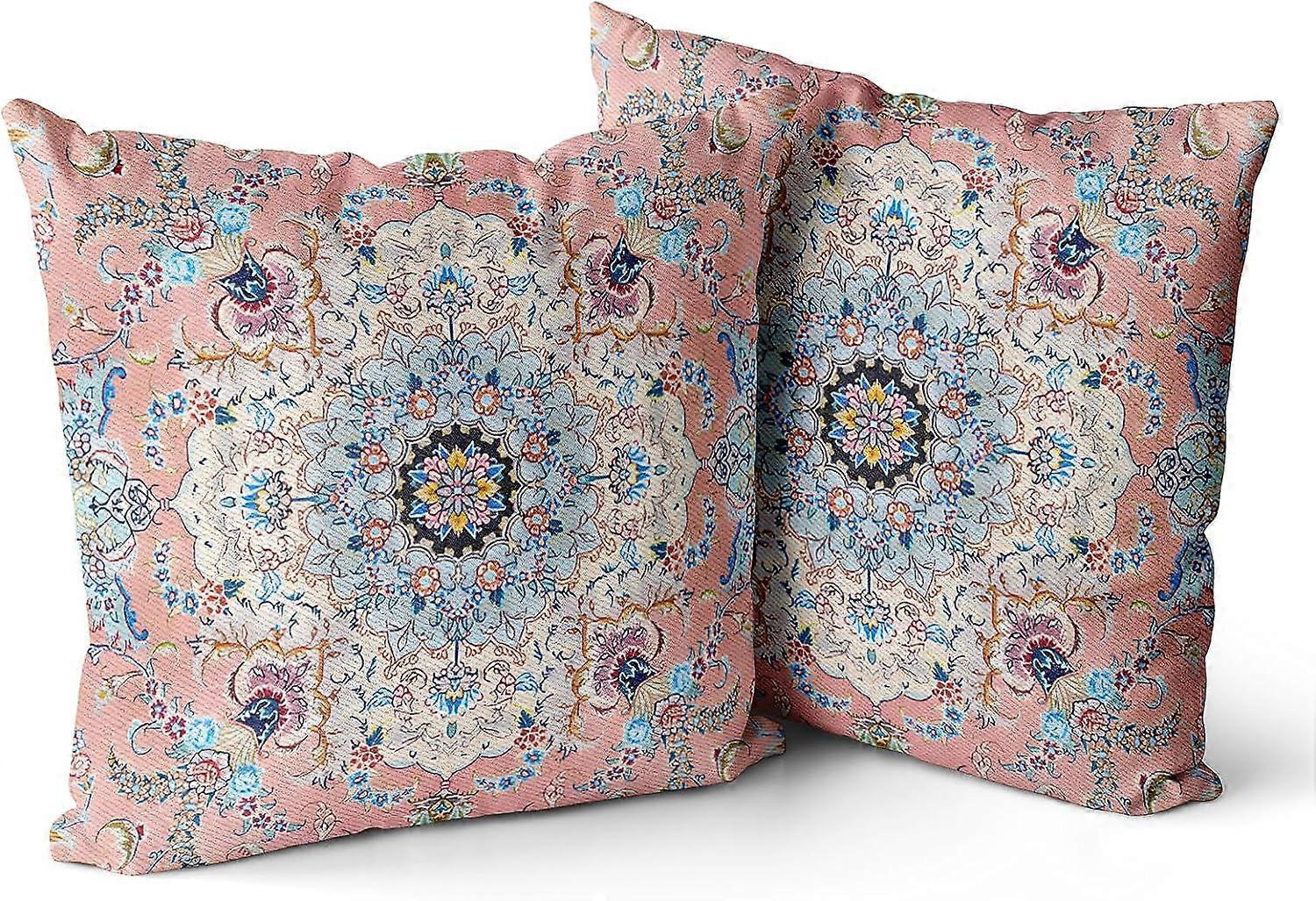 Boho Throw Pillow Covers 20x20", Set of 2, Burnt Pink & Terracotta, Rust-Colored, No Inserts, for Bedroom/Living Room/Sofa