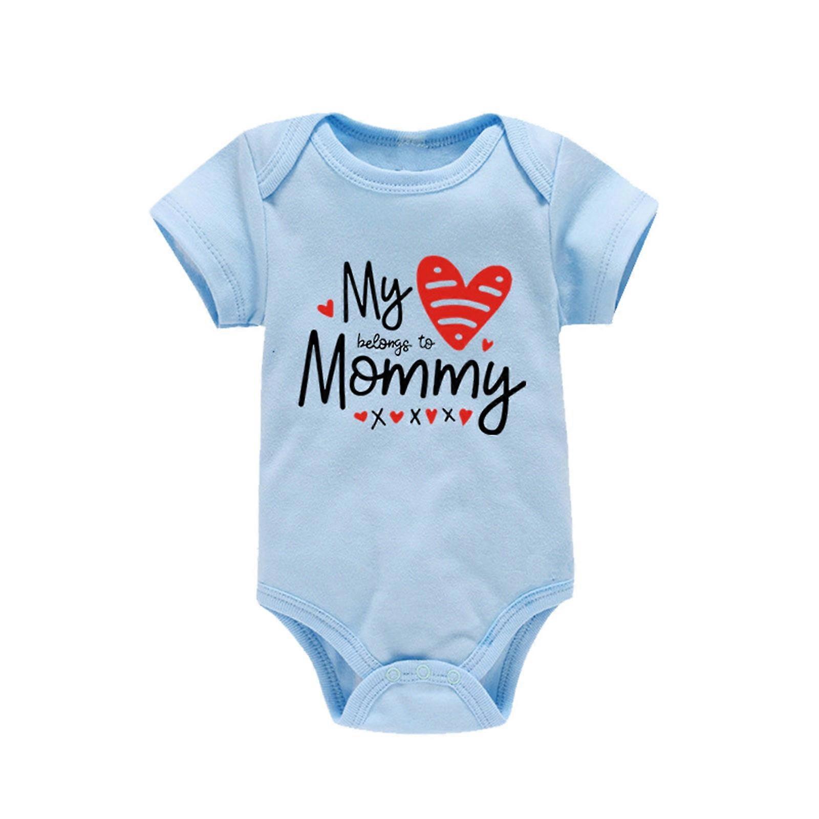 Clearance Baby Onesies 0-3M, Valentine’s Heart Print Romper, Short Sleeve, Unisex, Blue, 9M – Compatible with Newborn Essentials