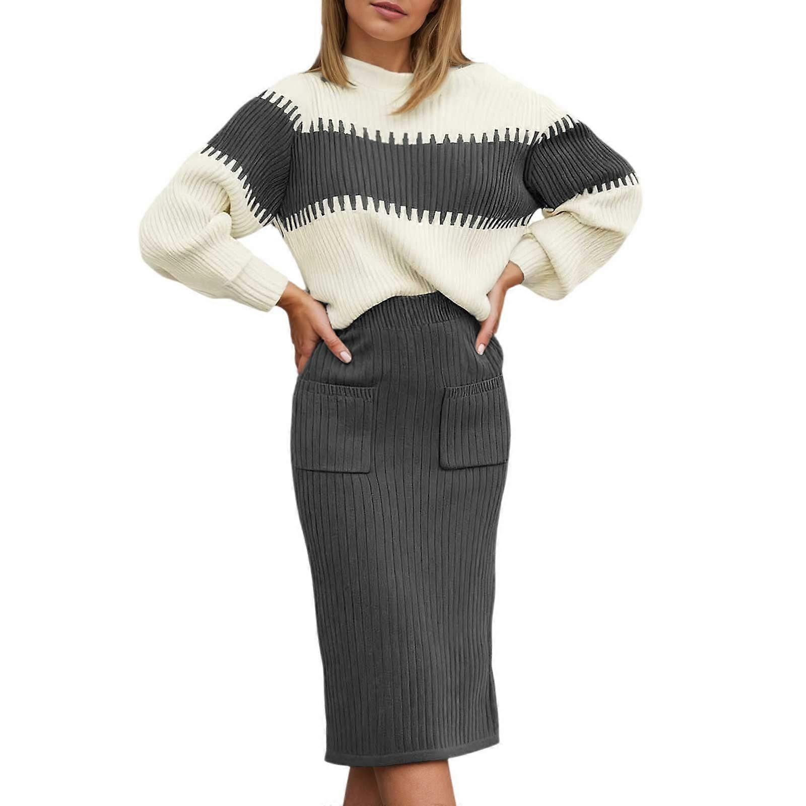 Christmas Dresses for Women Crew Neck Long Sleeve Casual Knit Sweater And Skirt Pullover Dress Outfit Fall Winter Grey