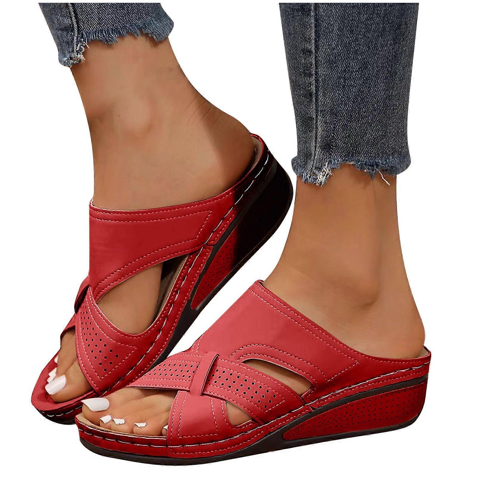 Sandals Women,Womens Sandals Dressy,Women's Fashion Casual Solid Color One-Foot Breathable Spring and Summer Wedge Heel Sandals Red 8.5