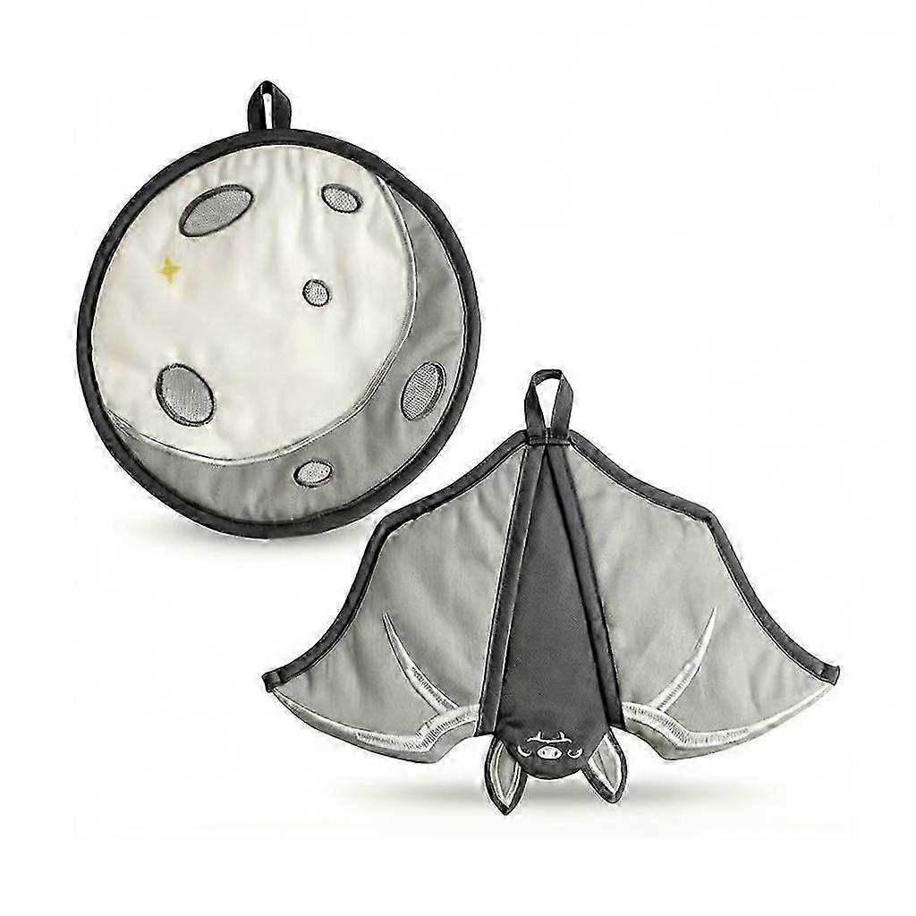 Heat Resistant Oven Mitts and Pot Holders Set - Gothic Bat & Moon Design, Kitchen Gloves for Baking, Cooking, and BBQ