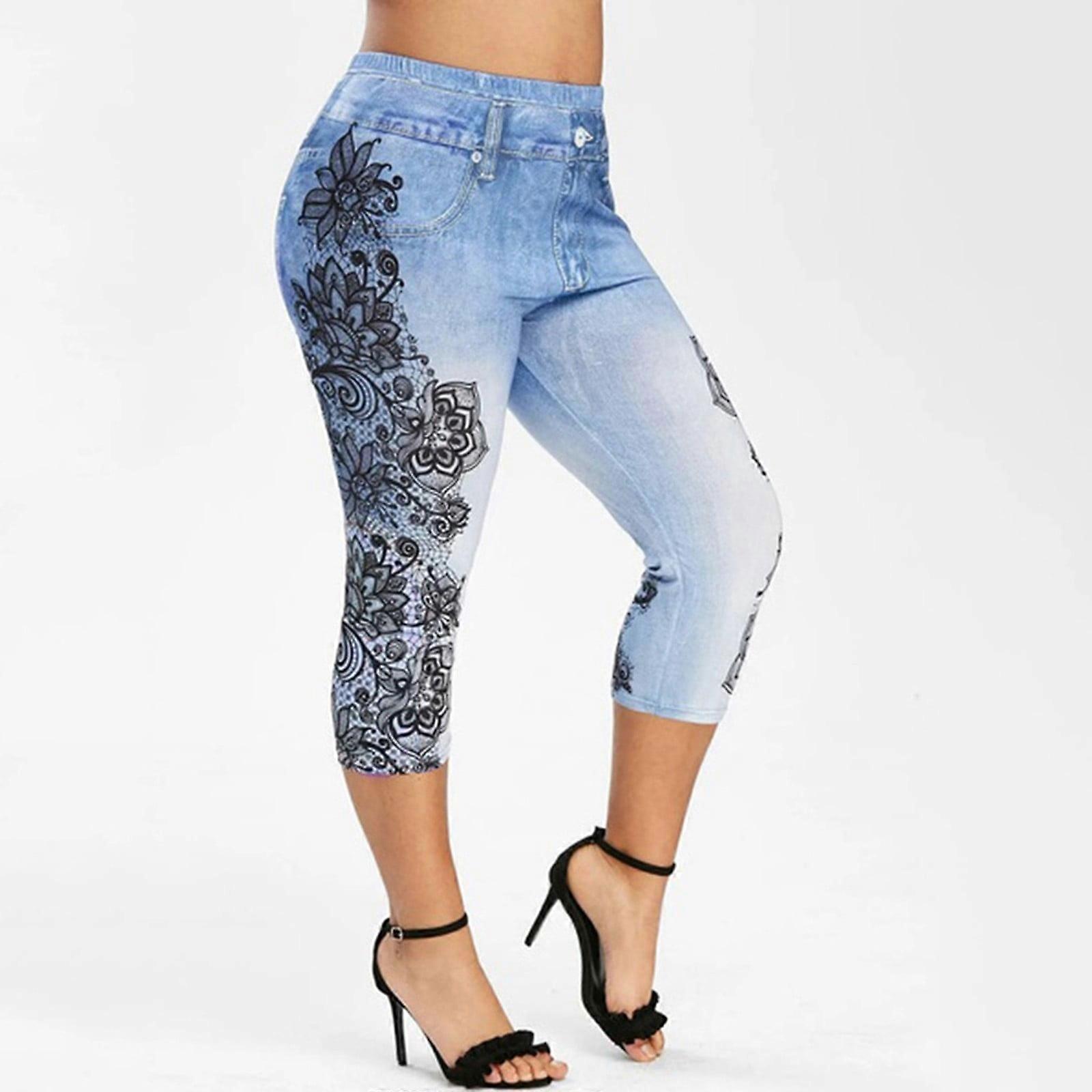 Summer Plus Size Capris for Women Casual Summer Women's Fashion Panel Denim Leggings Summer Capris Leggings Yoga Pants Trousers for Women