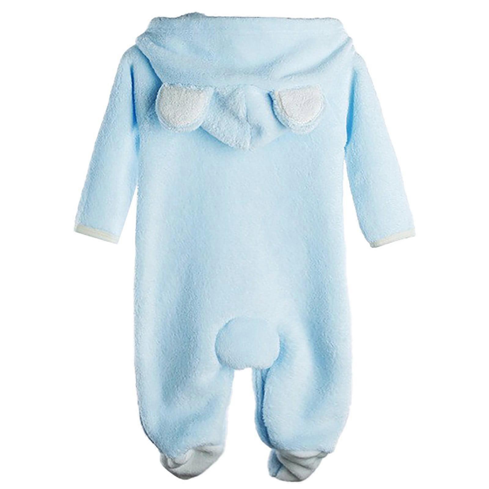 Clearance Baby Boy Clothes 0-3M, Coral Velvet Hooded Crawling Suit, Autumn/Winter Warm Ropa de Bebe Niña (Blue, 9M)