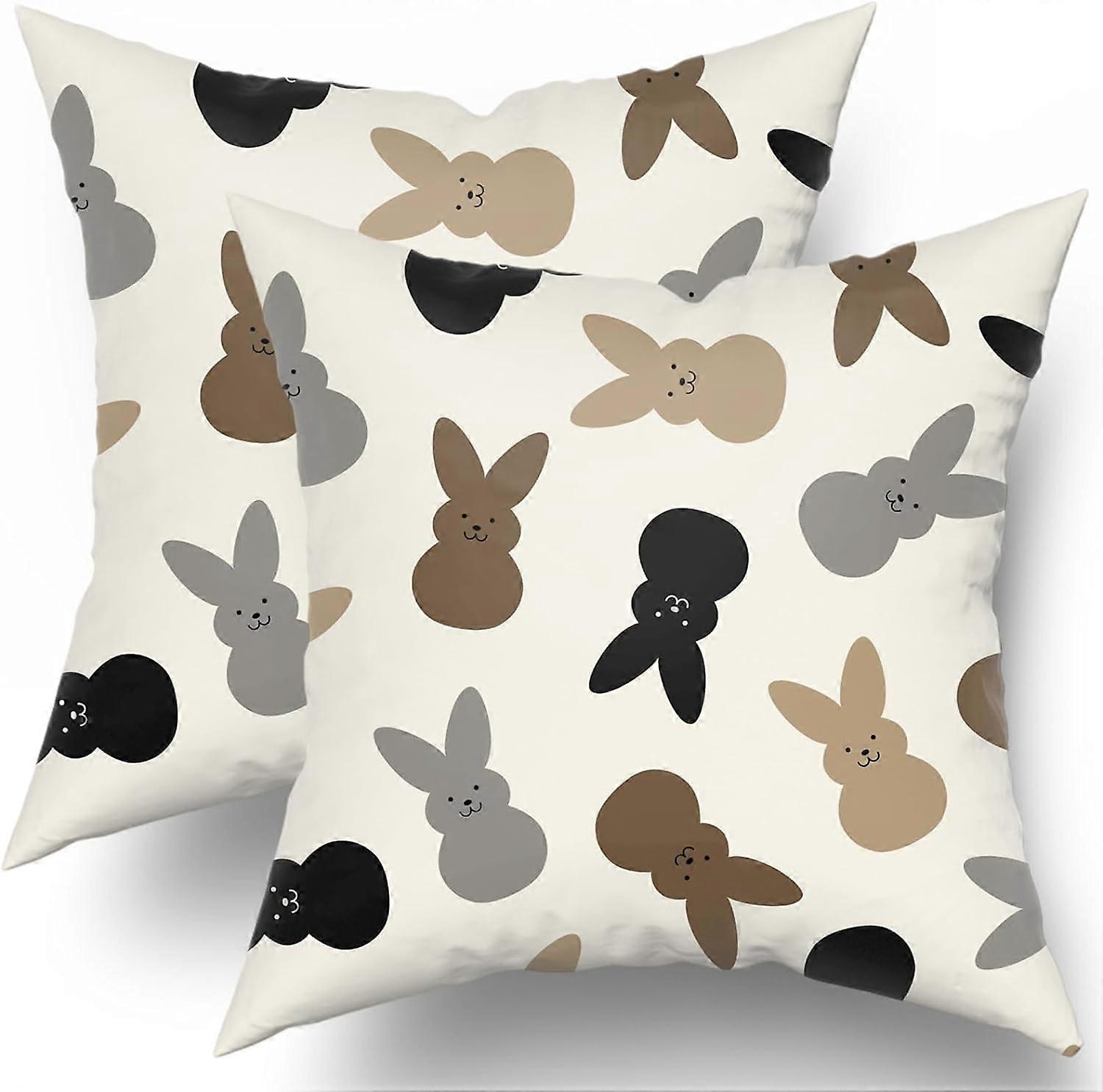 Spring Easter Pillow Covers 16x16, Set of 2, Brown/Coffee/Grey Bunny Rabbit Decor, Cotton Cushion Covers for Couch, Bed – Compatible with standard