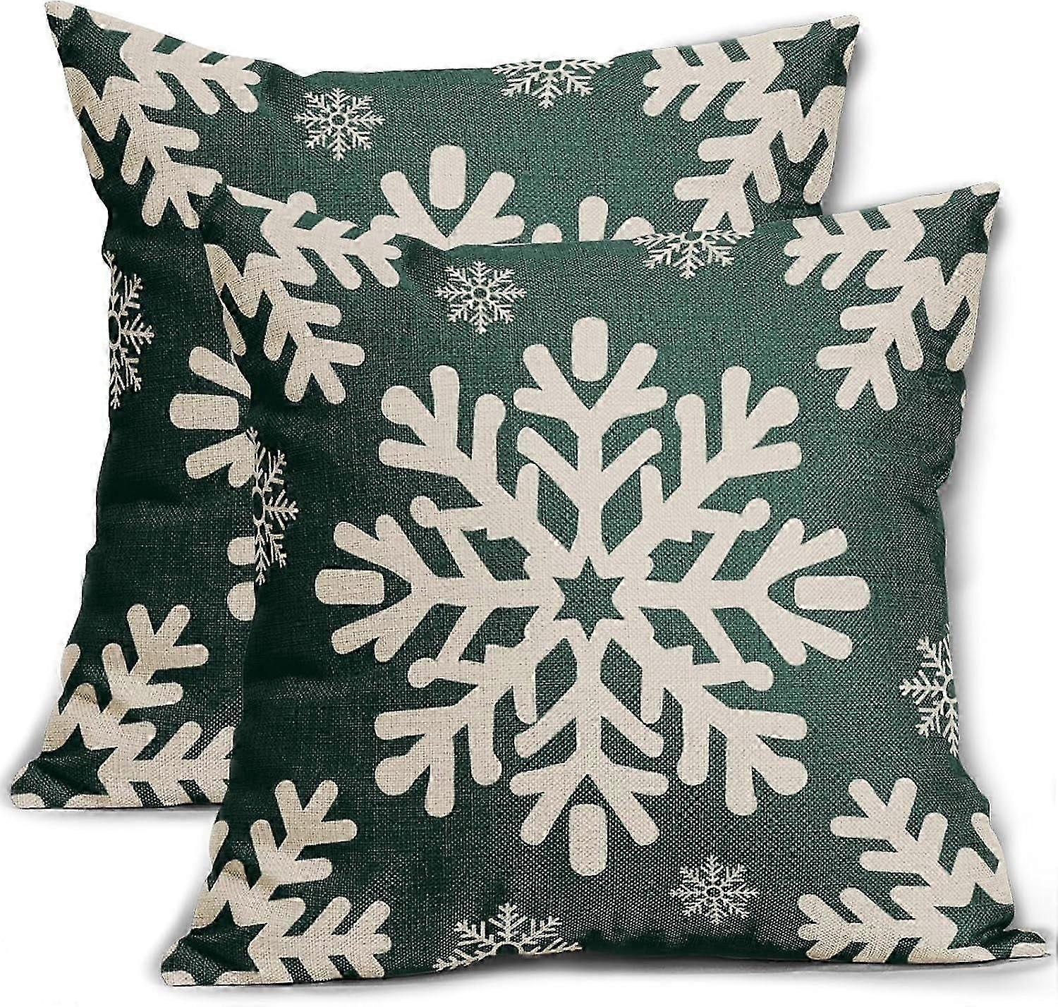Forest Green 16x16" Christmas Pillow Covers (2 pcs), Snowflake Rustic Winter Decor, Linen Throw Pillow Cases for Sofa/Couch/Bed Compatible with