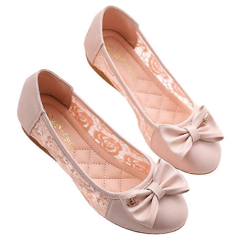 Women's Breathable Lace Flats, Slip-On Walking Shoes, Non-Slip Sole, Elegant Bow Detail, Casual Office Shoes – Compatible with All Day Wear