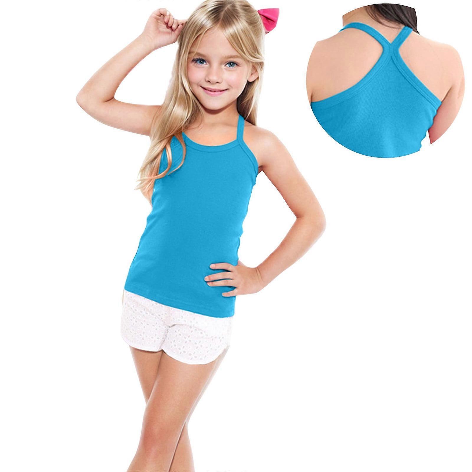Cotton Sleeveless Tank Tops for Girls – Solid Color Summer Vest Tees, Blue, Compatible with Kids & Baby Girls