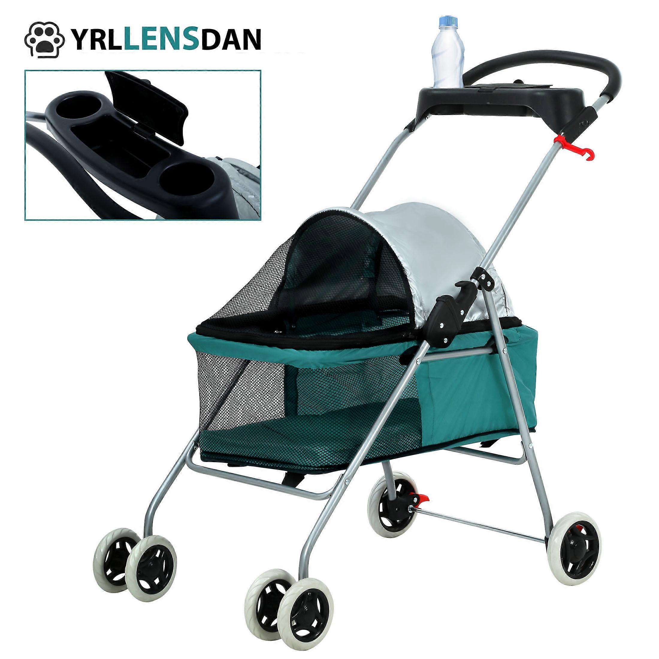 Sun-Proof Pet Stroller for Small/Medium Dogs (10–30 lbs) & 2 Cats – Includes Bottle Holder & Sponge Pad, Teal
