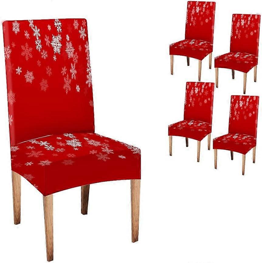 Winter Chair Cover Christmas Magic Flying Border Holiday Snow Winter Set of 4 Snowflakes Chair Cover Decorative Seat Slipcovers for Dining Room