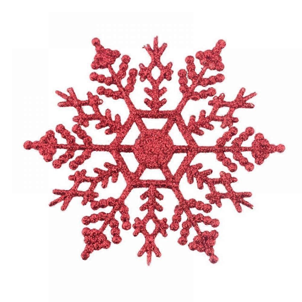 12 Pack Red Snowflake Ornaments Plastic Glitter Snow Flakes Ornaments for Winter Christmas Tree Decorations Size Varies Craft Snowflakes