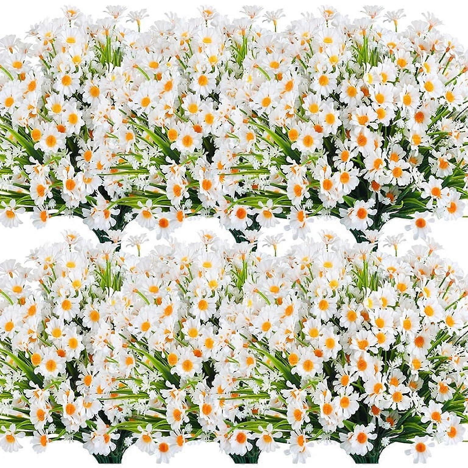 8-Pack UV-Resistant Artificial Daisy Flowers – White Faux Greenery for Garden, Porch, Window Box & Indoor Decor (Compatible with Outdoor Use)