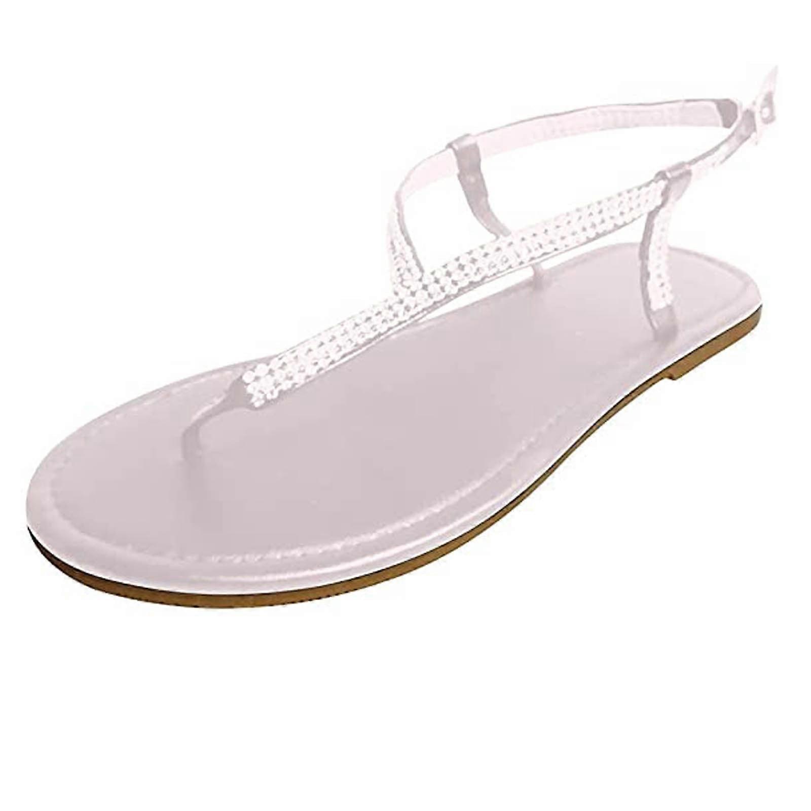 Women Summer Clip-Toe Shoes Rhinestone Comfy Sandals Flats Casual Beach Sandals 39 Silver