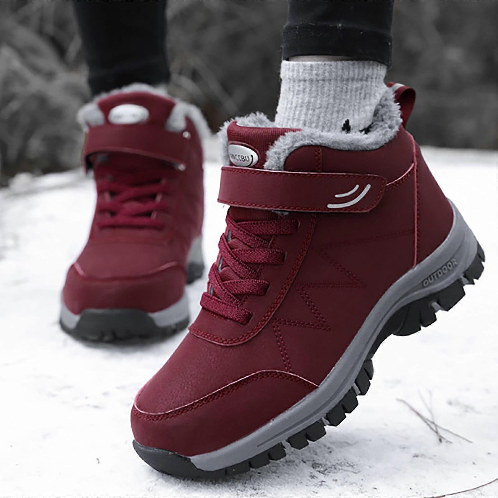 Women's Snow Boots Wide Width Women's Work Boots Comfortable Ankle High Warm Winter Snow Boots (Red,8.5)