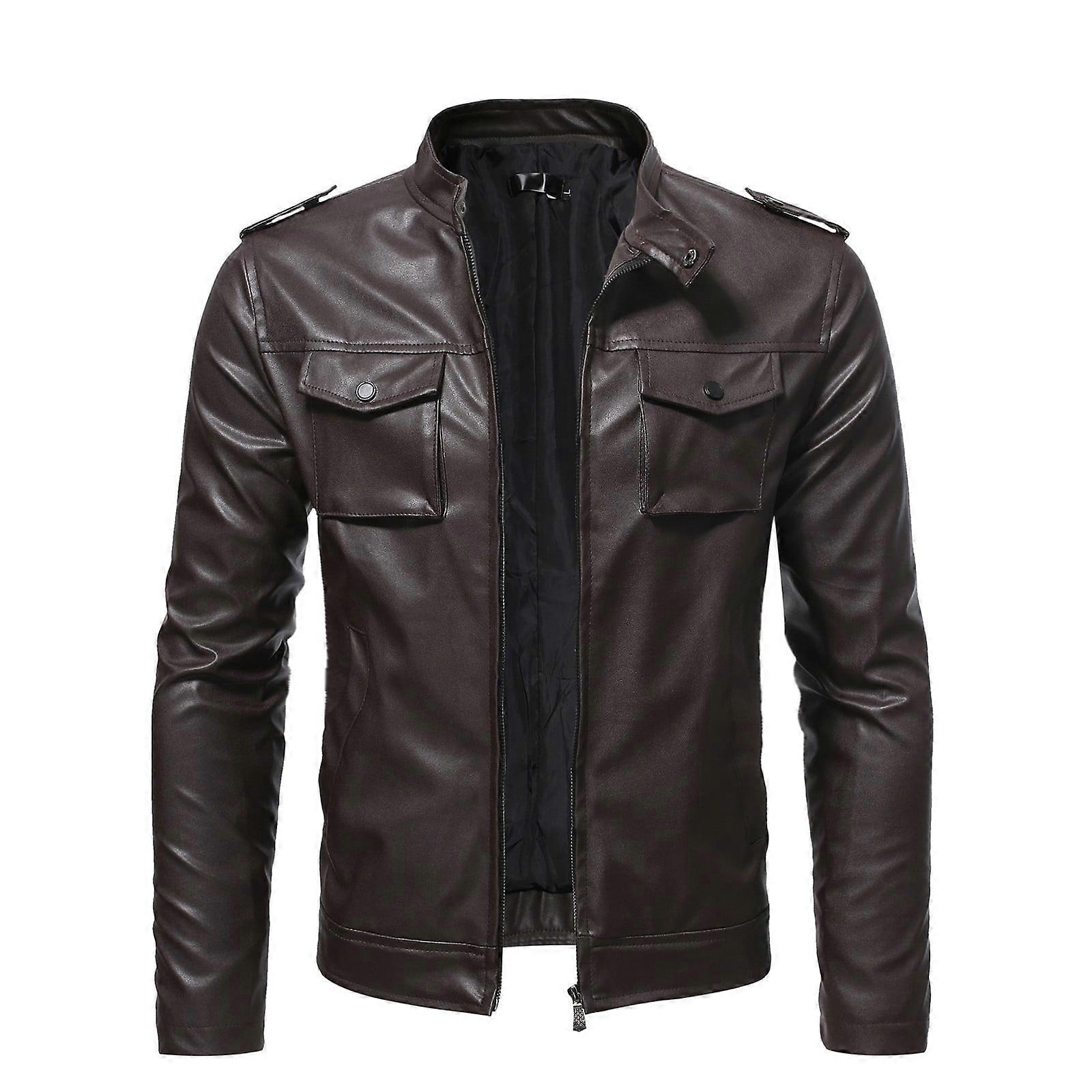 Men's Leather Plus Fleece Jacket, Motorcycle Jacket, Warm Leather Jacket Brown 10(XL)