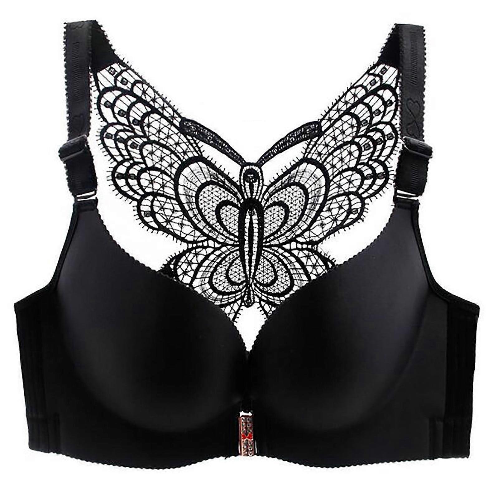 Plus Size Wireless Full Coverage Bra, Front Closure & Butterfly Backless, Comfortable Everyday Push-Up Bra for Women – Black, Compatible with 48C