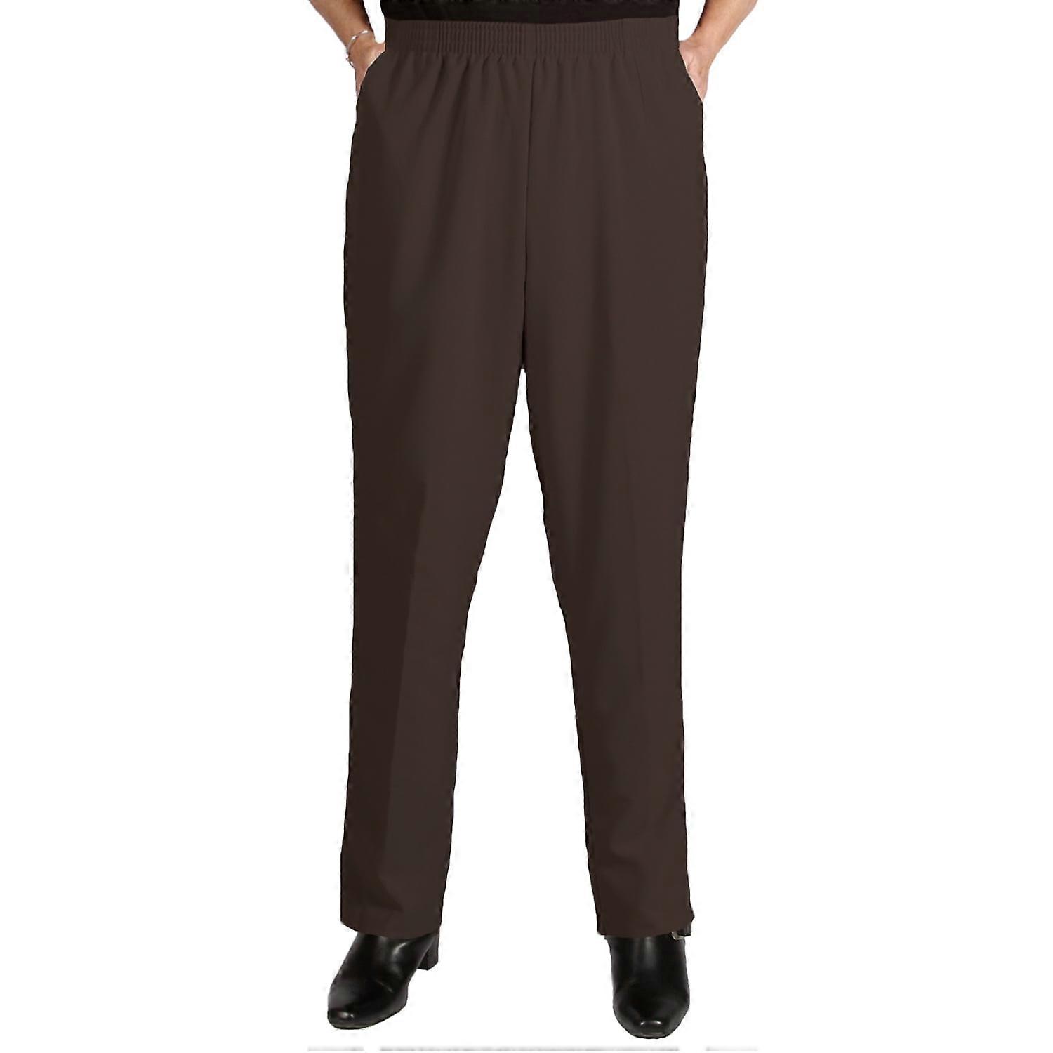 Women's Plus Size Elastic Waist Pull-On Shaped Fit Dress Pants with Pockets - Chocolate Brown - 20WP