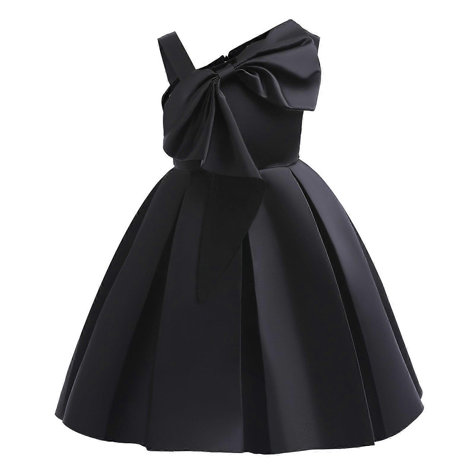 Girls' Solid Princess Dress, Sleeveless Cold-Shoulder, Formal Flower Girl Dress (Black, 8Y)