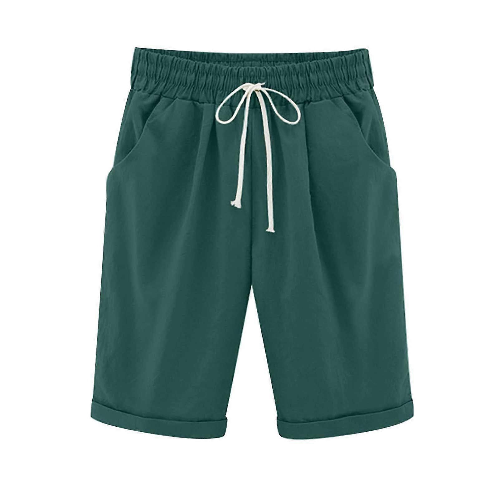 Women's Plus Size Casual Shorts, Solid Cotton-Linen, High Waist, for Summer, Beach, Workout & Running – Compatible with All Active Lifestyles
