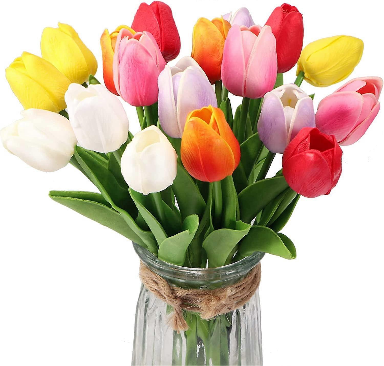 10pcs Real Touch Pink Tulips (14") PU Artificial Flowers for Wedding, Easter, Home & Office Decoration