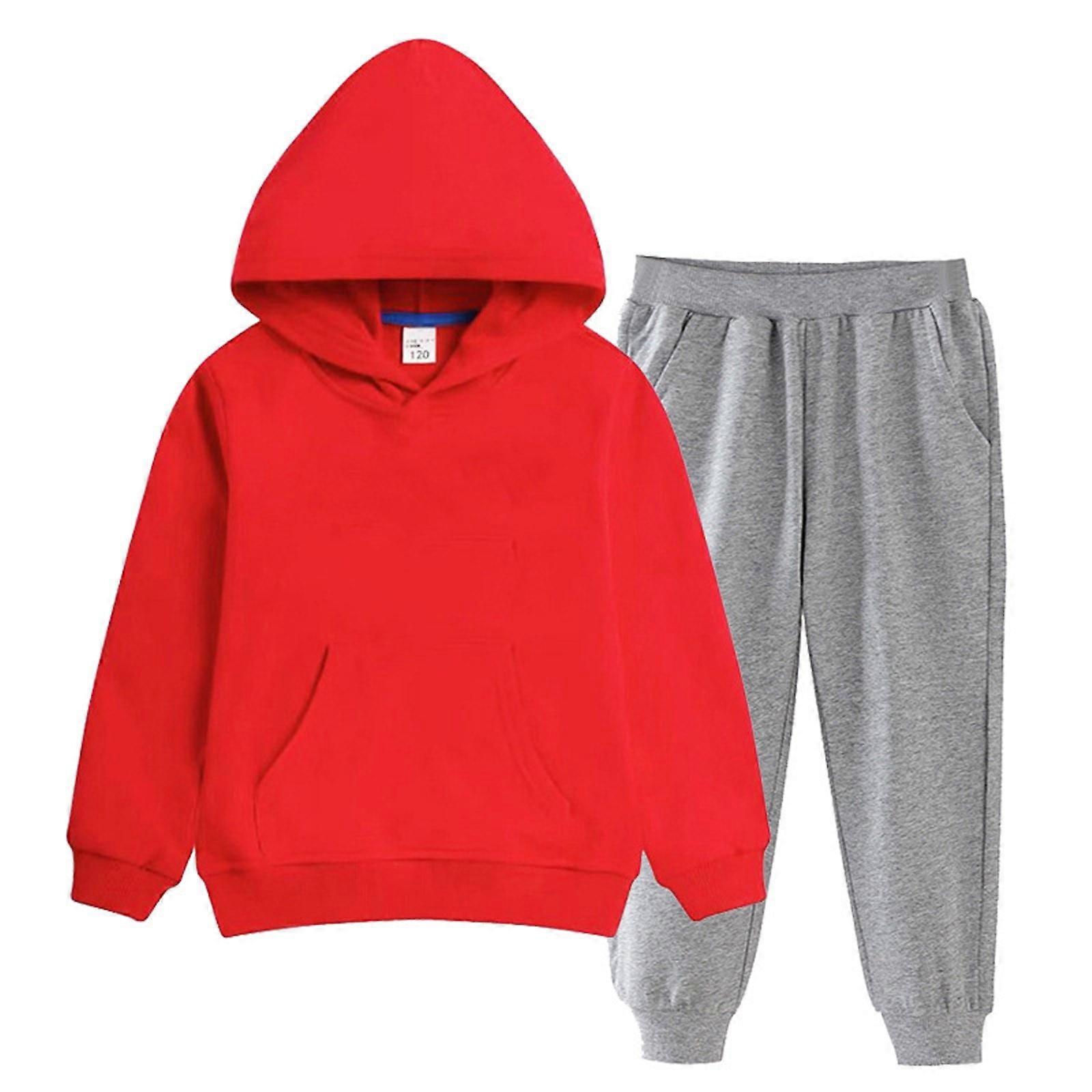Kids Solid Color Hooded Sweatshirt Set with Fashion Long Pants Fall Winter Soft Two Piece Outfit for Children 2-12 Years(Red#2,4-5 Years)