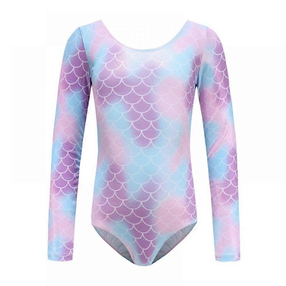 Girls Tie Dye Long Sleeve Leotard for Ballet Dance Gymnastics Toddler Kids Light Purple 5-6Y