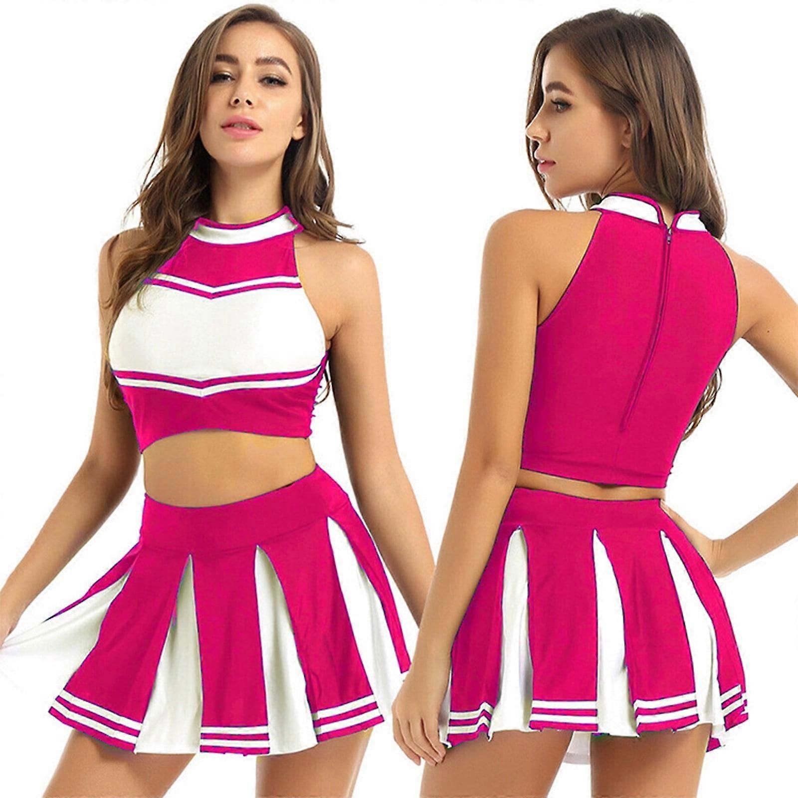 Riforla Women's Cheerleading Role Play Cheerleading Short Skirt Set Pink XL