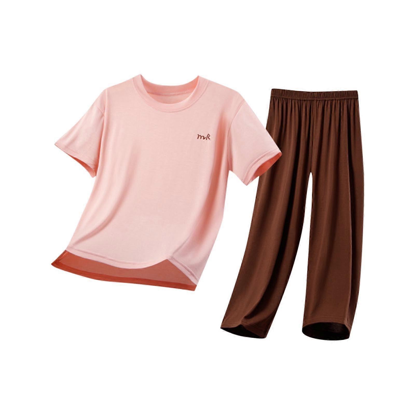 Boys Summer Pajamas,Junior Pajamas,Summer Solid Color Round Neck Short Sleeve Set for Boys Casual Home Clothes Two Piece Pajama Set Pink 5-6 Years