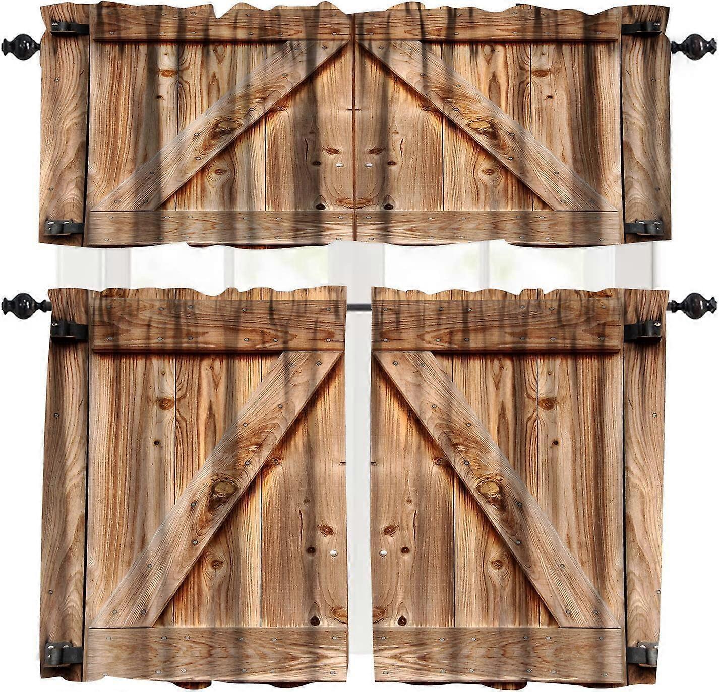 Brown Wood Rustic Valance Curtains,Rustic Vintage Rustic Kitchen Living Room Den Binding Small Curtains 3 Piece Set