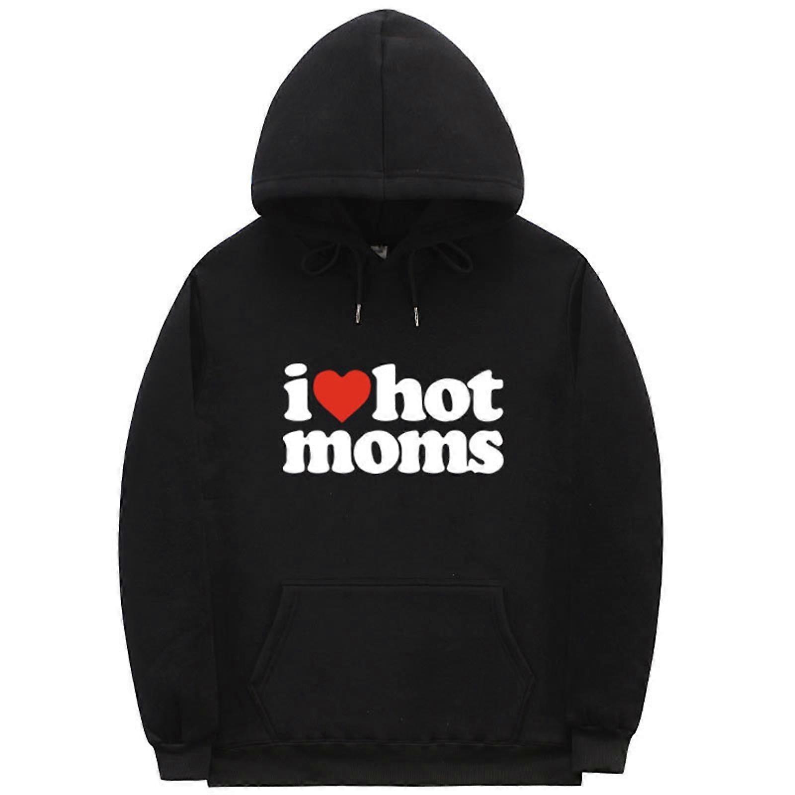 Men's Hoodie Pullover with "I LOVE HOT MOMS" Print, Casual Sport Sweatshirt for Autumn/Winter, S-3XL, Compatible with Standard Sizing