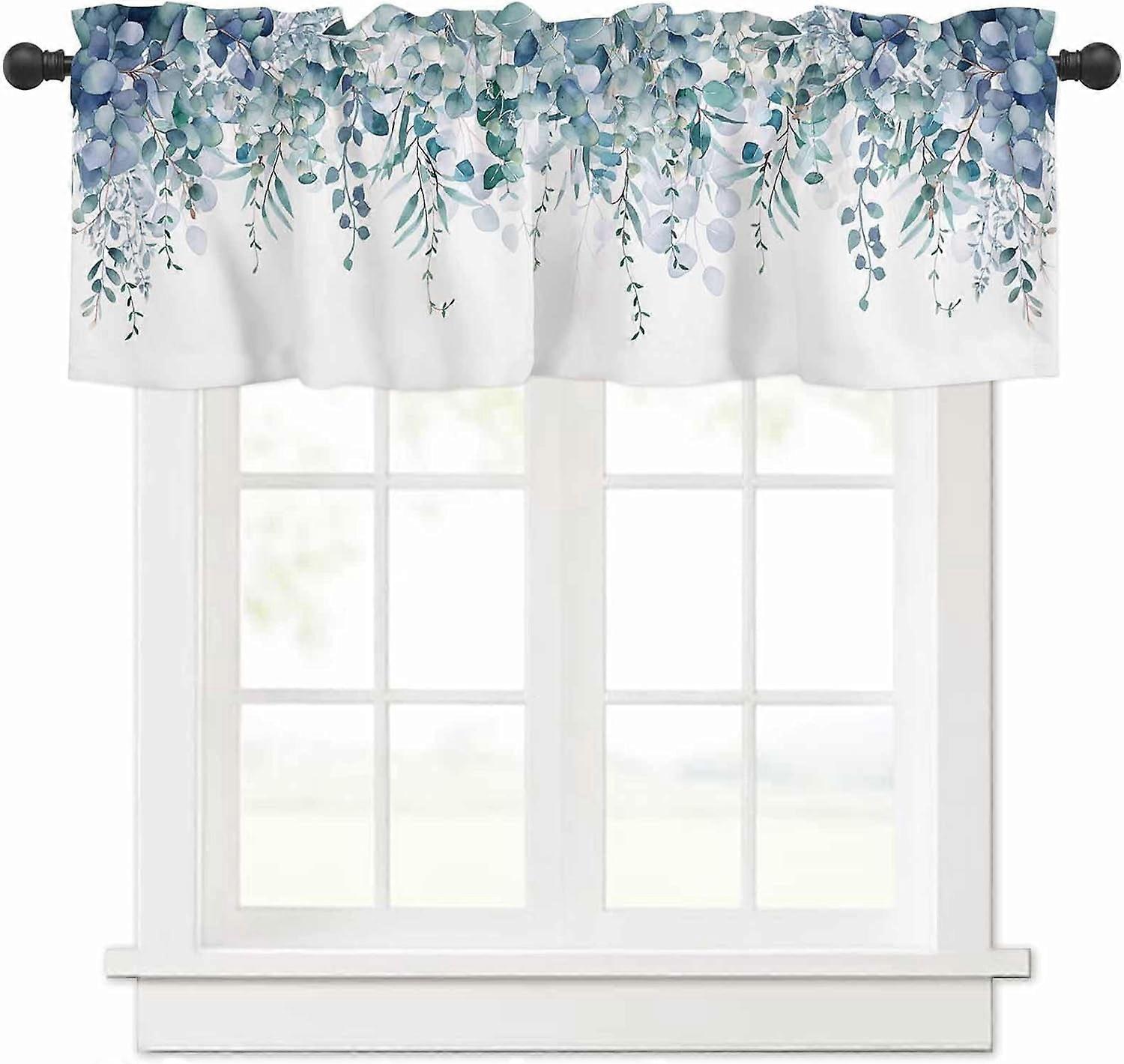 Blue Eucalyptus Rod Pocket Curtain Valance, 54x18in, Watercolor Leaves Design – Compatible with Standard Rods