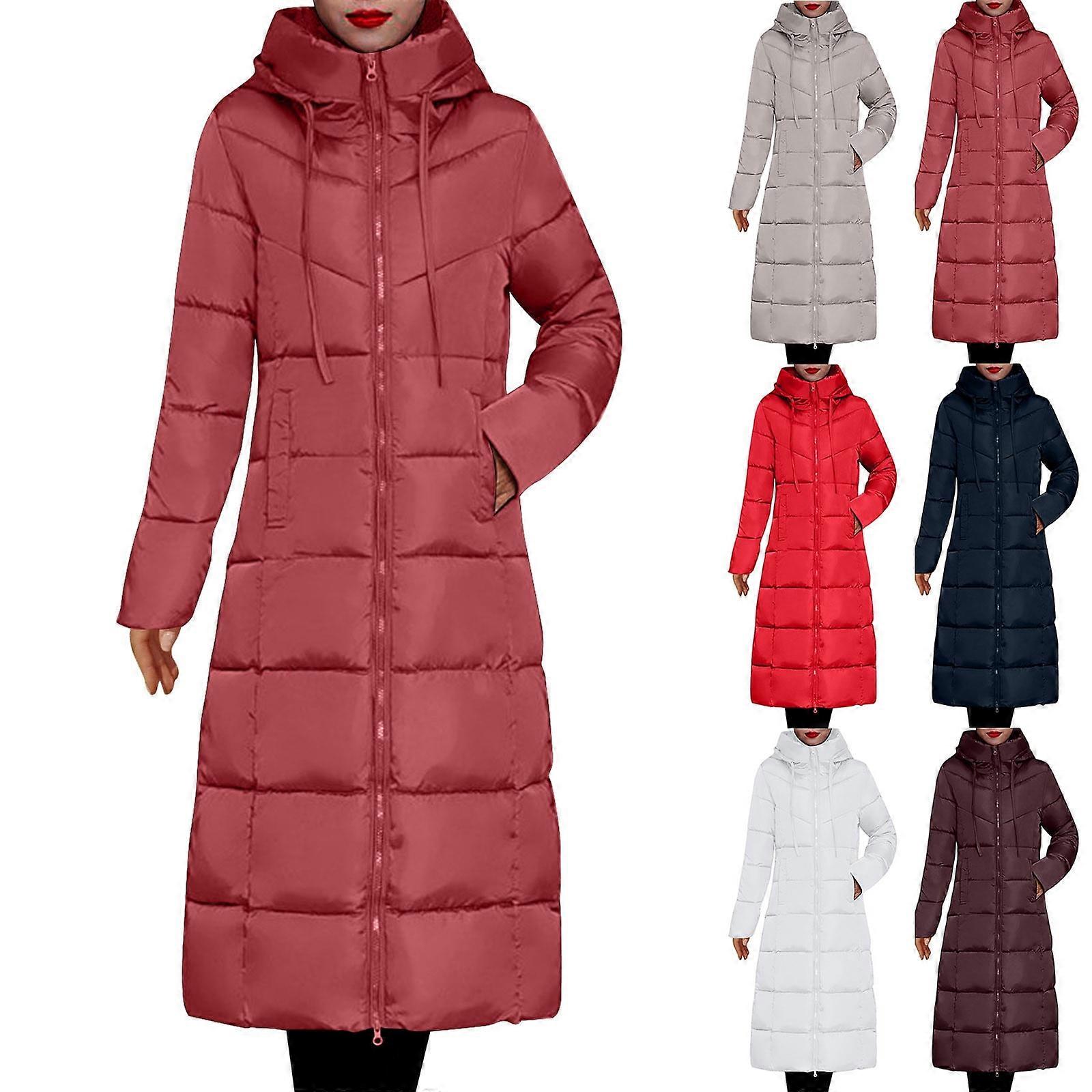Women's Plus Size Watermelon Red Puffer Jacket, Mid-Length Thickened Padded Coat with Pockets, Fall/Winter Warm Trench Jacket, Compatible with XL