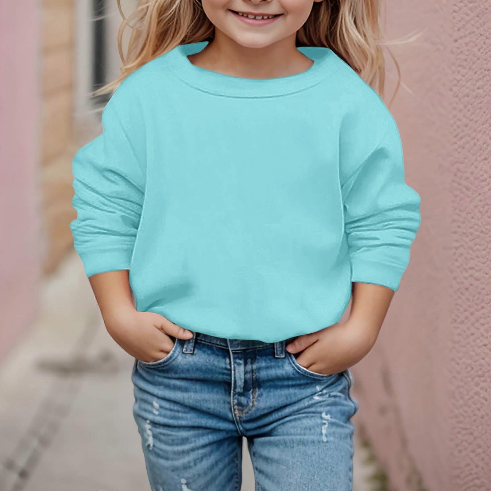 YOUSNH Toddler Sweatshirt Kids Boys Girls Child Long Sleeve Solid Sport Sweatshirt Pullover Tops Girls Hoodies Blue 14-15 Years