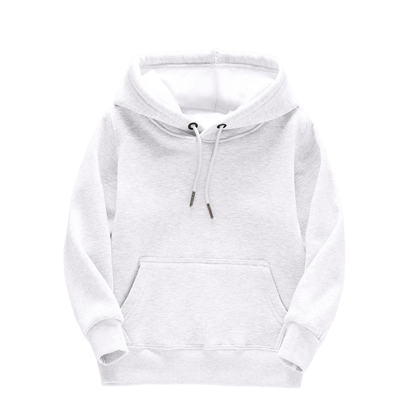 Cute Solid Hoodie for Girls, Long Sleeve Drawstring Sweatshirt with Pocket, Thickened Warm Pullover Top, White, Size 6-8 T, Compatible with Kids