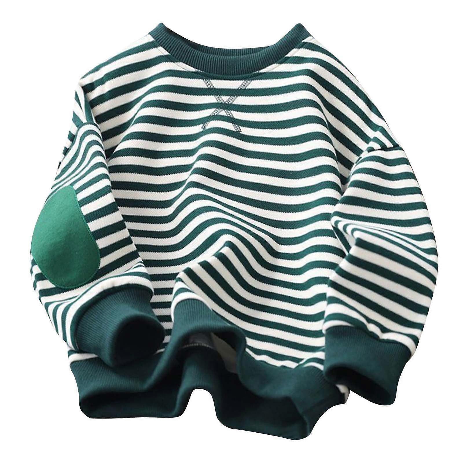 Kids Boys Girls Sweatshirt Striped Crewneck Sweatshirts Fashion Children Casual Long Sleeve Tops Crew-Neck Pullover Sweatshirts Green