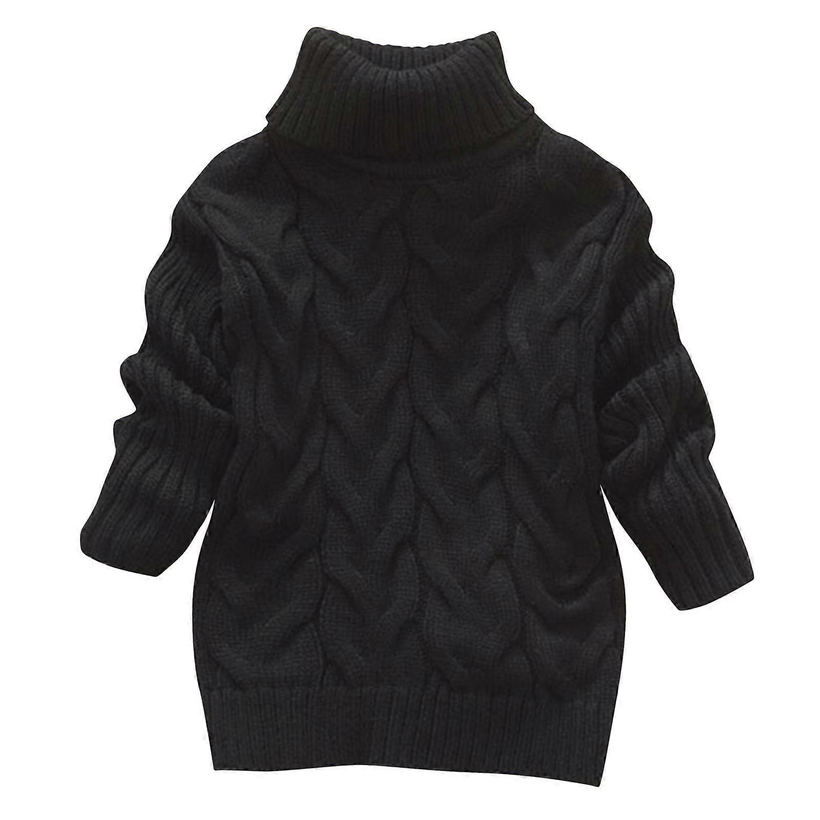 Toddler Boys & Girls Turtleneck Cable Knit Sweater – Warm Fall/Winter Solid Color Long Sleeve High Neck Jumper, Black