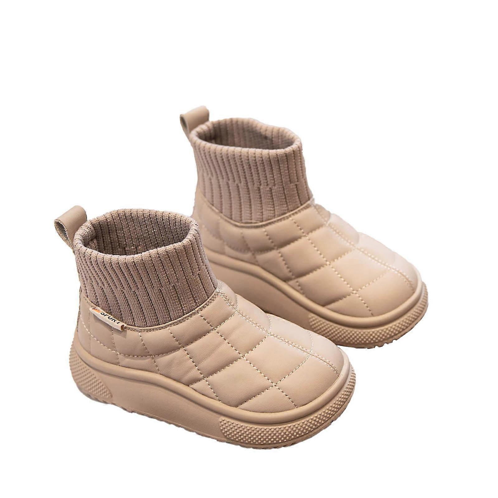 Ediodpoh Children's Winter Solid Color Snow Boots for Boys And Girls Non Warm Boots With Wool Thickening Boots for Boys Khaki 12.5
